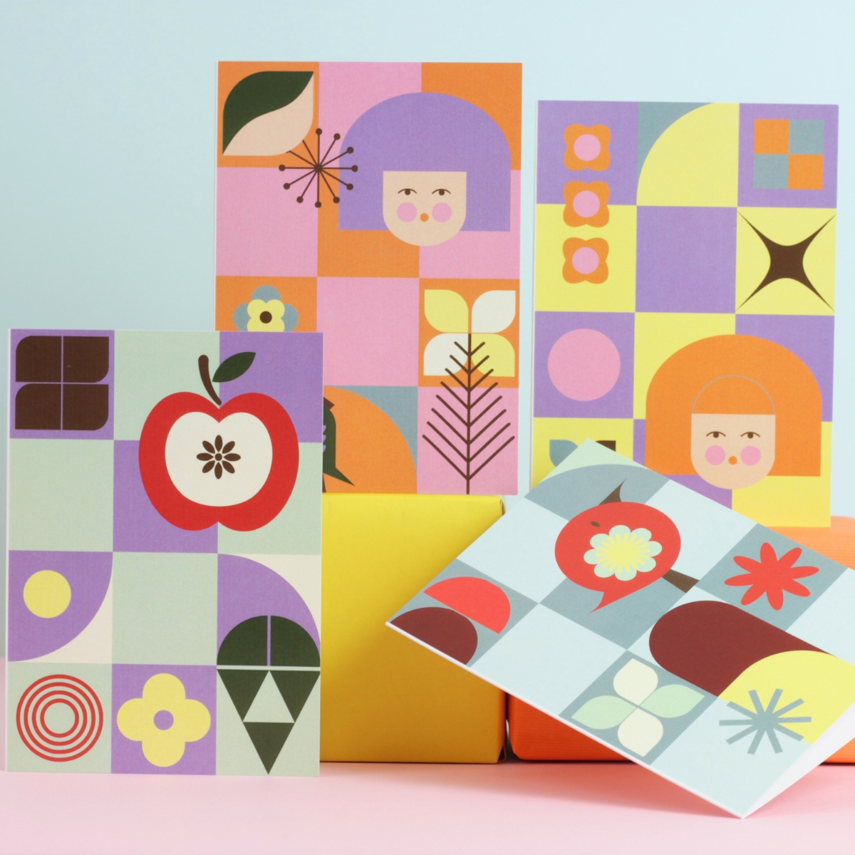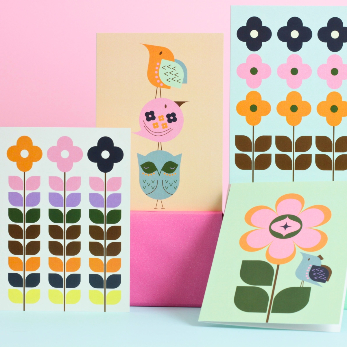 Each card features one of my original retro-inspired designs, printed on sturdy 300 gsm matt art card. Cards are scored and folded, with a clean, blank interior and a self-sealing envelope included for each card. Supplied as a coordinated set, they’re ideal for gifting or keeping in your stationery drawer.