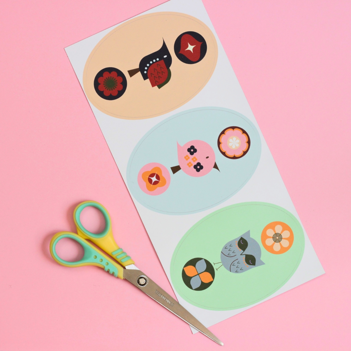 A set of 3 matt vinyl stickers, approximately 105×74 mm each, ready for gifting. Perfect for laptops, notebooks, water bottles, gift wrapping, planners, and scrapbooks. Curated sets from the Retro Geometric, Birds & Baubles, or Blooms in Colour series. Water-resistant and durable, ready to use.