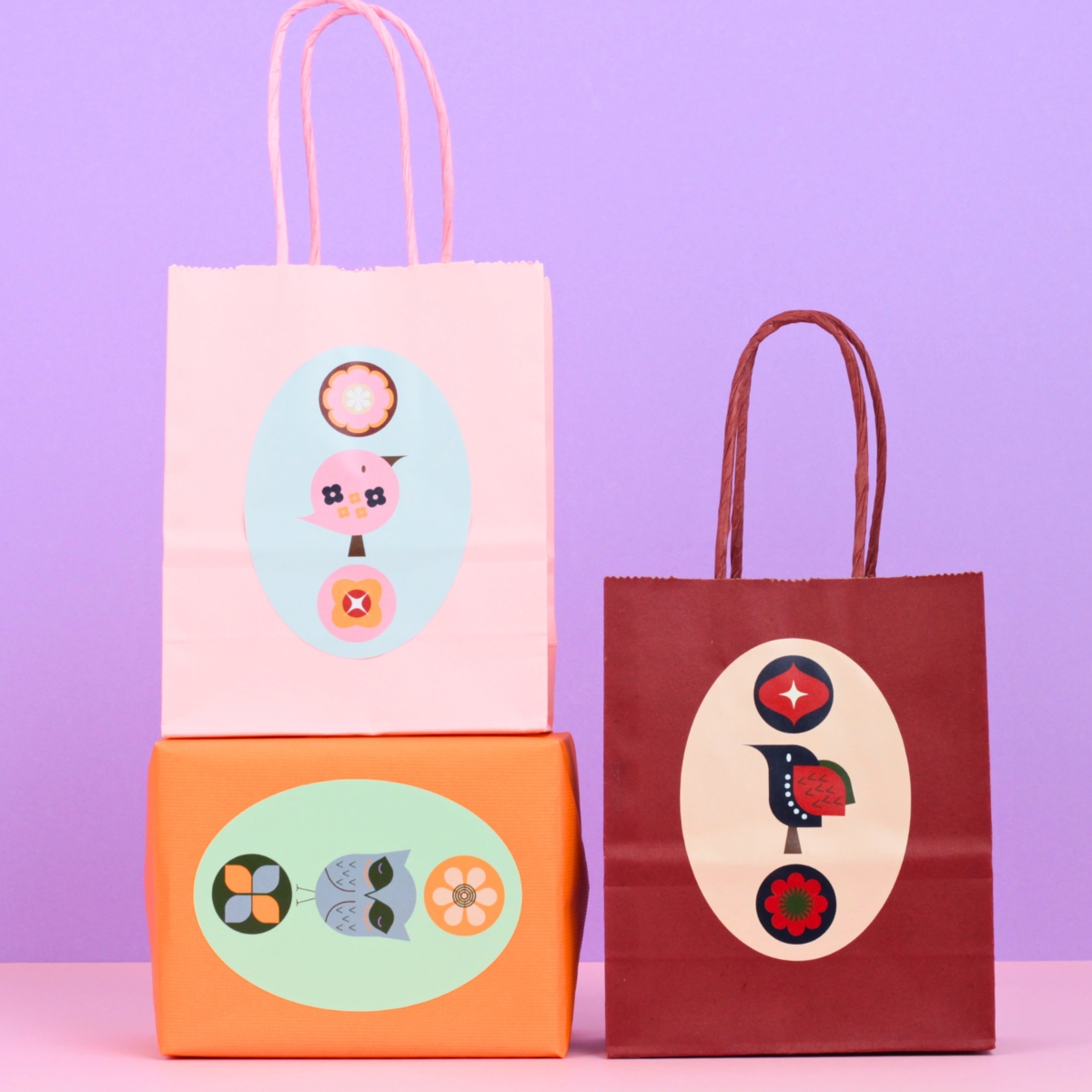 A fun matt vinyl sticker, approximately 105×74 mm (A7) and cut to shape. Perfect for brightening up laptops, notebooks, water bottles, gift wrapping, and planners. Featuring one of my original designs from the Baubles and Birds series. Water-resistant and durable, for a colourful addition to your day.